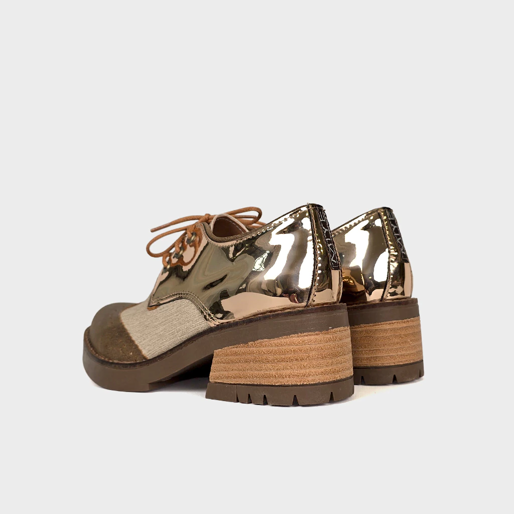 Abonitados clásicos atemporales, con un marcado estilo Miye, combinados en color chocolate, beige y oro. súper cómodos y cancheros con capellada calada estilo Oxford.