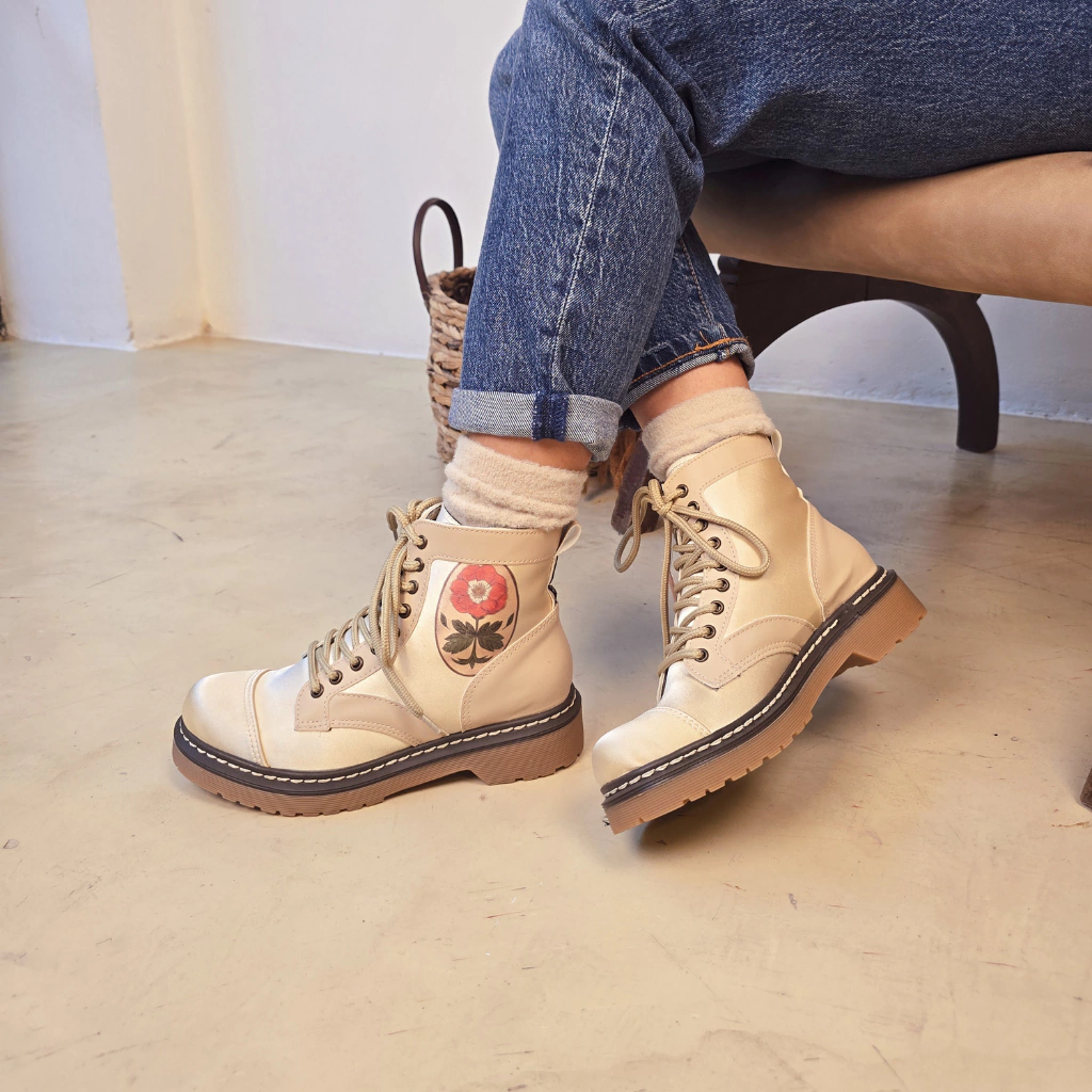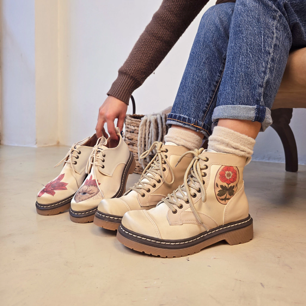 Diseño clasico y atemporal, con base redondeada de goma antideslizante y una hermosa estampa combinada de Corazon estilo bordado y flor, ideales para el día a día.