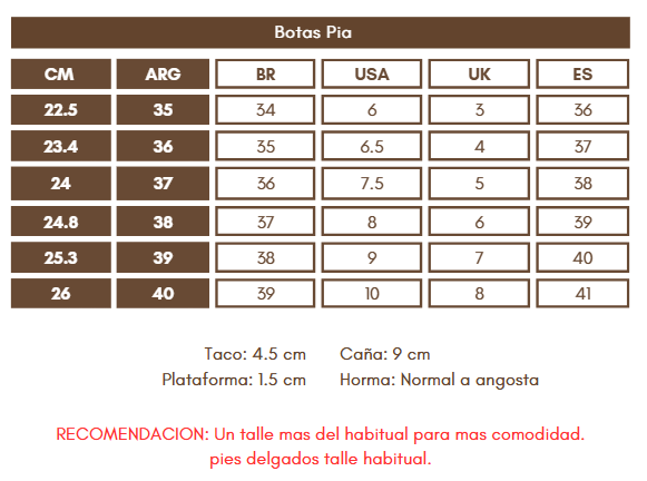 Horma: Normal / Punta angosta (para mayor comodidad un talle más del habitual)