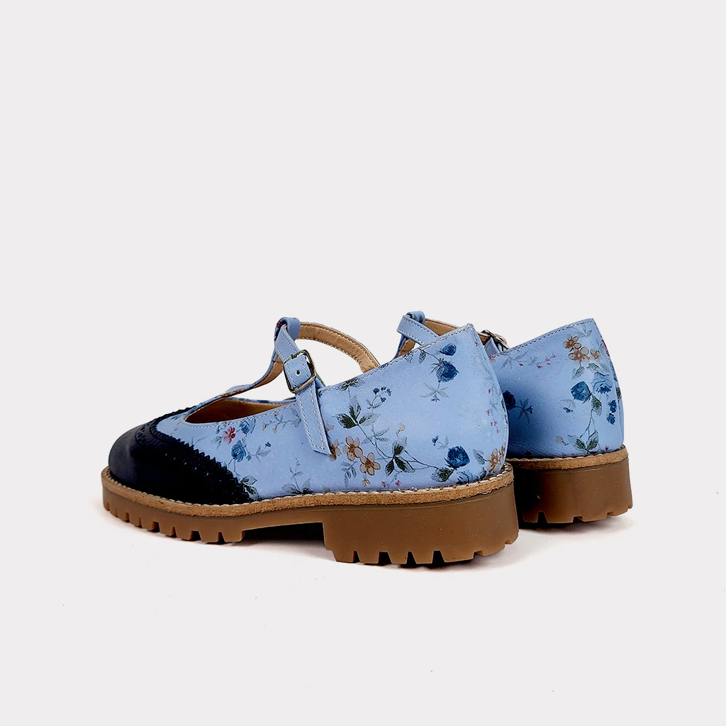 El Calzado del Contraste: Estas hermosas y bonitas Guillerminas están combinadas en colores hermosos y el exclusivo Cuero estampado único de la Nueva Colección Aló Liberty. El delicado patrón floral contrasta de forma espectacular con la base robusta (track o chunky), creando un look moderno y audaz.